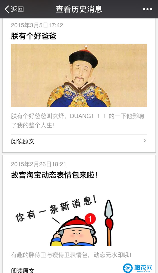 不過,各種可愛的惡搞,都讓故宮淘寶的微信公眾號(hào)的粉絲數(shù)以極快的速度增長,現(xiàn)在,這樣看起來異常神經(jīng)的文章,幾乎每篇的閱讀量都是100000+!(這讓一直在艱苦奮斗卻還沒創(chuàng)造過100000+的梅花網(wǎng)小編怎么活!)