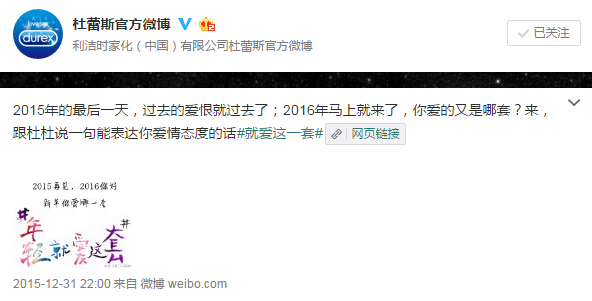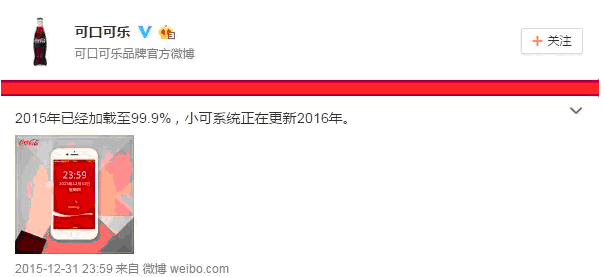 第三,Gif動(dòng)畫(huà)效果很贊:杜蕾斯、可口可樂(lè)等幾個(gè)GIF圖效果不錯(cuò),至少讓用戶(hù)覺(jué)得很用心,呈現(xiàn)效果也很贊。尤其那個(gè)杜蕾斯2015變成2016的圖片,再配上文案真是絕了。