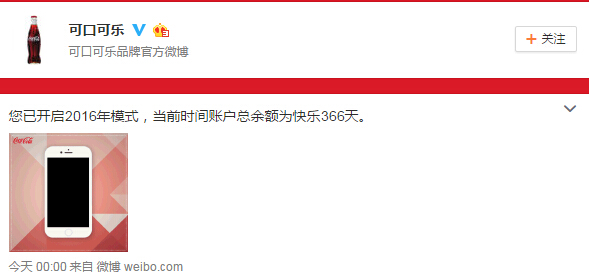 0點(diǎn)準(zhǔn)時(shí)發(fā)了一條微博,圖片創(chuàng)意感不強(qiáng),僅僅在罐子上的表盤(pán)還算有結(jié)合,不過(guò)不算上乘了。
