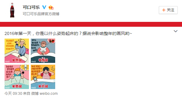 【1月1日 09:30】2016年的第一天,用一個(gè)問(wèn)話(huà)式的互動(dòng)開(kāi)啟,“漫畫(huà)+文案”語(yǔ)言很接地氣??!